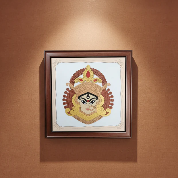 Maa Durga Wall Art with Wooden Frame – Traditional Hindu Goddess Durga Decorative Wall art for Home, Office & Pooja Room
