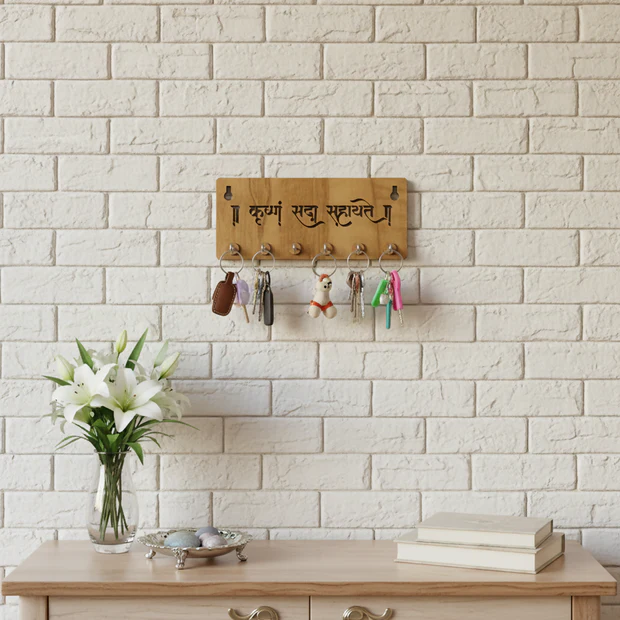 Krushnam Sada Sahayate Wooden Key Holder for Wall – Premium MDF Krishna Devotional Wall Key Organizer