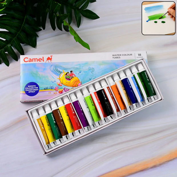 Camel Water Colour Tubes 18 Assorted Shades for Students and Artists (5 ml each)