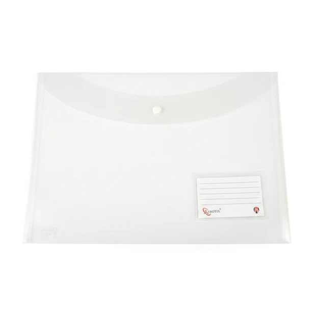 Transparent Button Closure Document File Folder with Label Pocket – A4 Size
