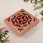 1 Pc Meenakari Wooden Chowki & Bajot Set: For Home & Office Puja (Multicolor)