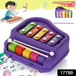 17799 2 in 1 Baby Piano Xylophone Toy for Toddlers, 5 Multicolored Key Keyboard Xylophone Piano, Preschool Educational Musical Learning Instruments Toy for Baby Kids Girls Boys 3+ Years (1 Pc)