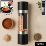 Add convenience and elegance to your kitchen and dining experience with this premium 2-in-1 Salt & Pepper Grinder. Designed with dual compartments, this compact and modern manual grinder allows you to grind two different seasonings—such as rock salt and black peppercorns—in a single device. The stainless steel and acrylic construction gives it a durable, sleek look, perfect for any countertop or dining table.