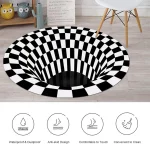 3D Space Round Carpet, Checkered Vortex Optical Illusions Non Slip Area Rug -Slip Floor Mat Non-Woven Doormat, for Living Dinning Room Bedroom Kitchen, 3D Vortex Rug Visual Illusion Rug Anti-Skid Area Dining Room Mat, bath mat, floor mat (1 Pc / 78 Cm)