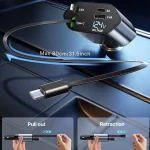 4-in-1 Super Fast Car Charger with Dual Built-In Cables, Dual USB Ports, LED Voltage Display & 120W High-Speed Smart Charging for All Smartphones