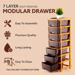 7-Layer Multipurpose Plastic Storage Drawer Organizer with Woven-Texture Design – Modular and Stackable Storage Cabinet for Home, Bedroom, Office & Kids’ Room – Sturdy Plastic Frame with Brown Box Packaging