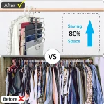 Household Plastic & Stainless Steel 5 In 1 Multi-Layered Mass Pant Hangers, Folding Storage Pant Rack Shelves
