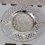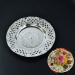 Decorative Designer Festival Ethnic Design Silver color Pooja Thali (8-inch/ Plastic)