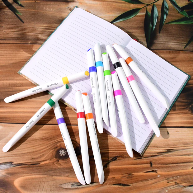 Camel Brush Pens are specially designed with flexible tips to create smooth watercolor-like effects and vibrant artwork. These pens are perfect for lettering, sketching, doodling, coloring, and fine detailing. The translucent ink flow allows blending and shading techniques, making them ideal for both beginners and professionals. Easy to use like a pen but delivers the creative versatility of a brush, making every art project more expressive and impactful.
