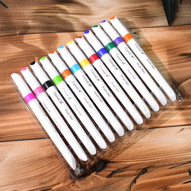 Camel Brush Pens – 12 Vibrant Shades (Flexible Tip for Watercolor, Lettering)
