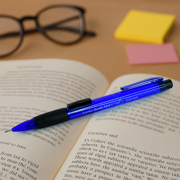 The Camlin Double Klick Mechanical Pencil is designed for smooth and precise writing with its 0.7mm fine tip. Featuring an innovative double click mechanism, this pencil allows quick and easy lead advancement for uninterrupted use. The ergonomic grip ensures comfortable writing, making it ideal for students, professionals, and creative tasks. This set includes free Hi-Par 0.7mm leads for long-lasting performance, ensuring a consistent and sharp writing experience.