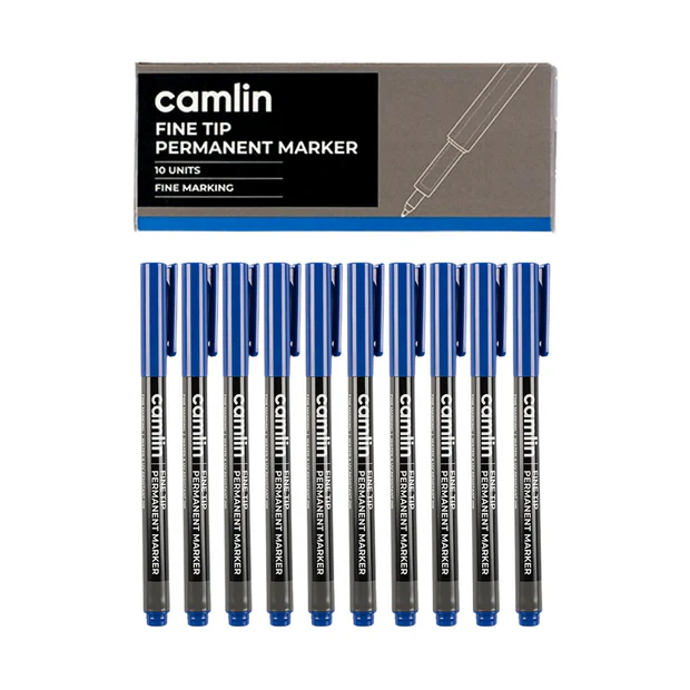 Camlin Fine Tip Permanent Marker (Set of 10 Units) for Fine Marking and Writing