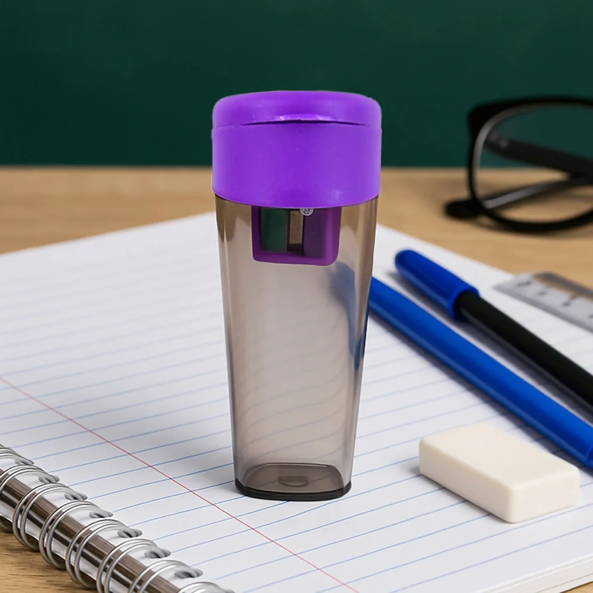 Transparent shavings container for a clean workspace.