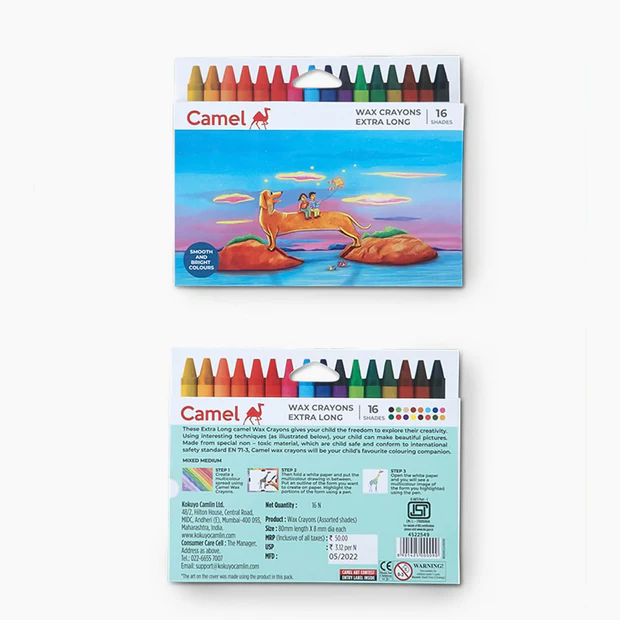 Camlin Wax Crayons Extra Long – 16 Bright Shades for Smooth Colouring