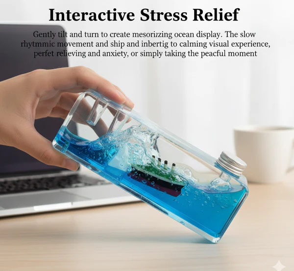 - This desk toy has a clear exterior and the inside is filled with soothing blue liquid, a floating titanic and an iceberg. You can gently tilt the paperweight to experience a soothing, stress relieving experience. Great for providing relief for kids and adults who suffer from anxiety.