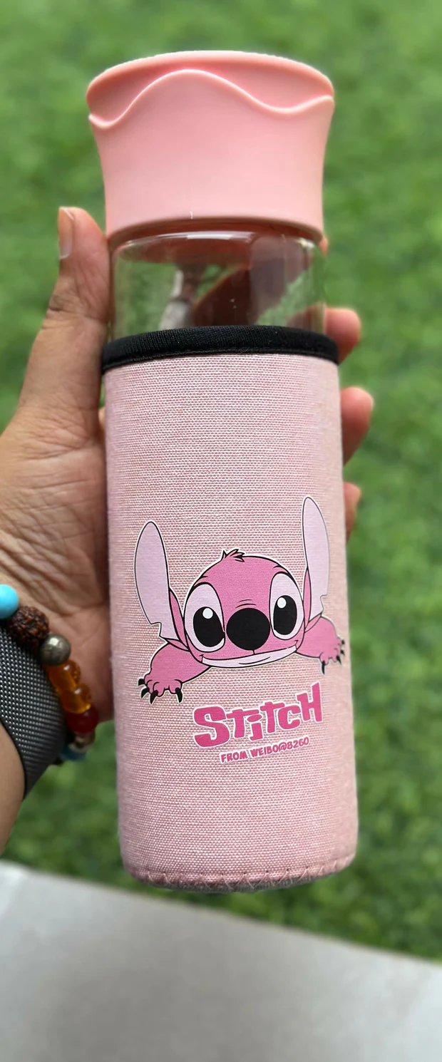 Add charm and cuteness to your daily routine with this adorable pink glass water bottle featuring a lovable cartoon character design. Made with durable, heat-resistant borosilicate glass, it comes with a soft insulated fabric sleeve for protection and a comfortable carry strap. Its secure leakproof lid and 500ml capacity make it perfect for kids, teens, or adults on the go – whether you’re heading to school, the gym, the office, or just out and about.