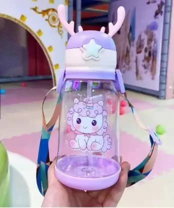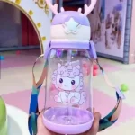 unicorn kids water bottle, BPA-free toddler bottle, cute cartoon water bottle, pastel purple bottle for girls, kids bottle with straw and strap, antler lid sipper, leakproof kids bottle, school water bottle for girls, baby drinking bottle, gift for toddler girls