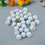 Beautifully crafted marbles with a glossy white surface and colorful swirls – appealing to both kids and collectors.