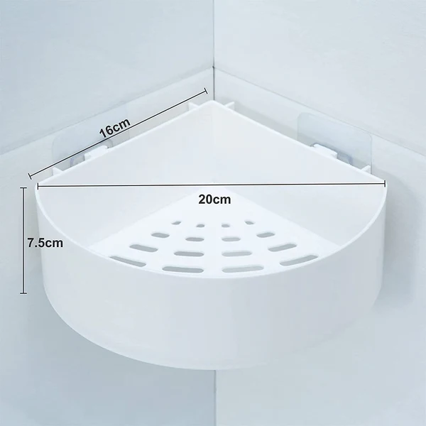 4033 Corner Shelf Bathroom Kitchen Rack Self Adhesive Shower Caddy Plastic Triangle Wall Mount Storage Basket