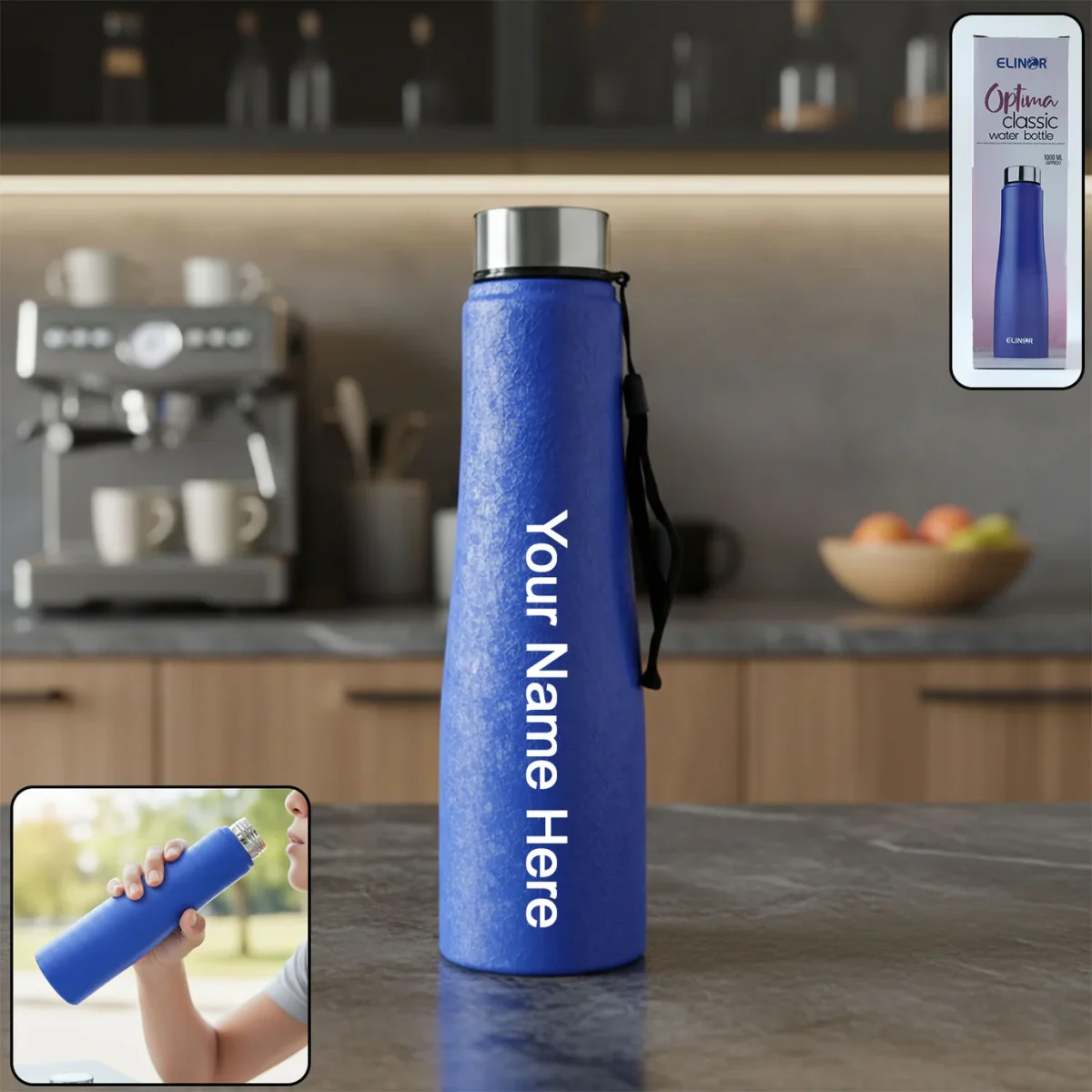 Custom Classic Stainless Steel Water Bottle Blue Color (1000 ML, 1 Piece)