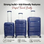Dark Blue Hard Shell Cabin Trolley Suitcase with Telescopic Handle & 8 Wheels – 3Pc Combo