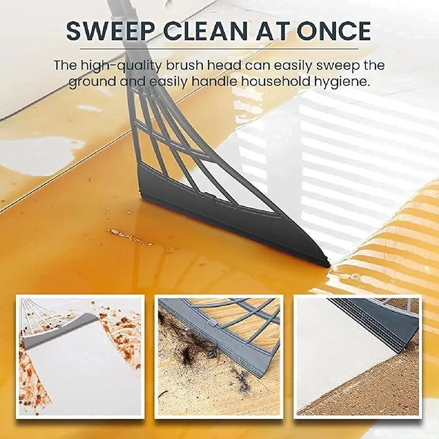 The magic broom is equipped with an adjustable length stainless steel rod. The ergonomic shape and expandable handle of this smart manual make it easy to use for a long time without affecting your hands. Clean windows, bathroom, or kitchen in minutes. The wiper is made of durable TPR material which is also food grade, hygienic, soft, pliable and even recyclable.