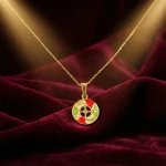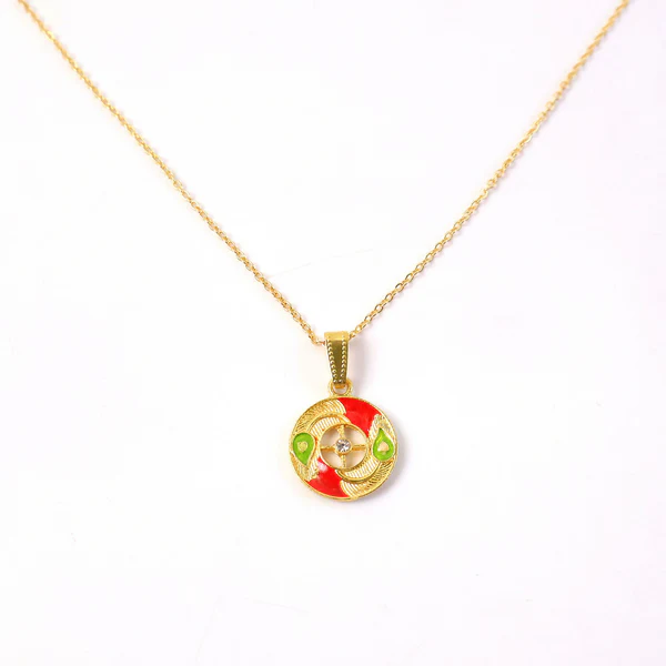 This elegant circular motif pendant necklace features a beautifully balanced round design with fine detailing that gives it a refined and eye-catching look. The combination of smooth curves and a central accent adds depth and character to the pendant. Hanging from a delicate chain, it is ideal for everyday styling as well as special occasions. Its versatile design pairs effortlessly with modern, fusion, and festive outfits, making it a stylish addition to any jewelry collection.
