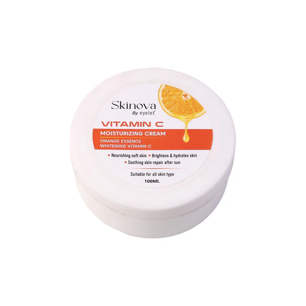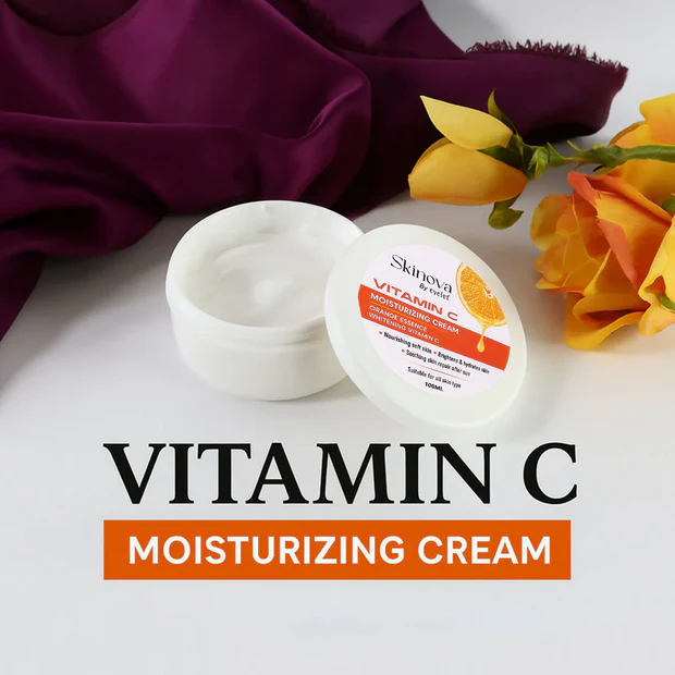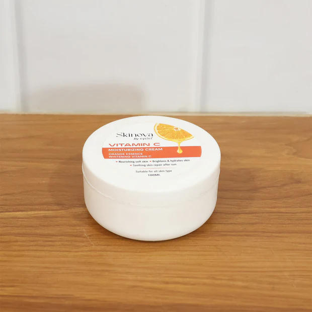 Vitamin C Moisturizing Cream is a nourishing skincare essential enriched with the goodness of orange essence and whitening Vitamin C. It helps hydrate the skin, brighten dullness, and promote a naturally glowing complexion. The lightweight formula absorbs quickly, providing long-lasting moisture and soothing care, especially after sun exposure. With regular use, it reduces uneven skin tone, enhances radiance, and leaves the skin soft, supple, and refreshed. Suitable for all skin types, this cream is perfect for daily skincare routines.