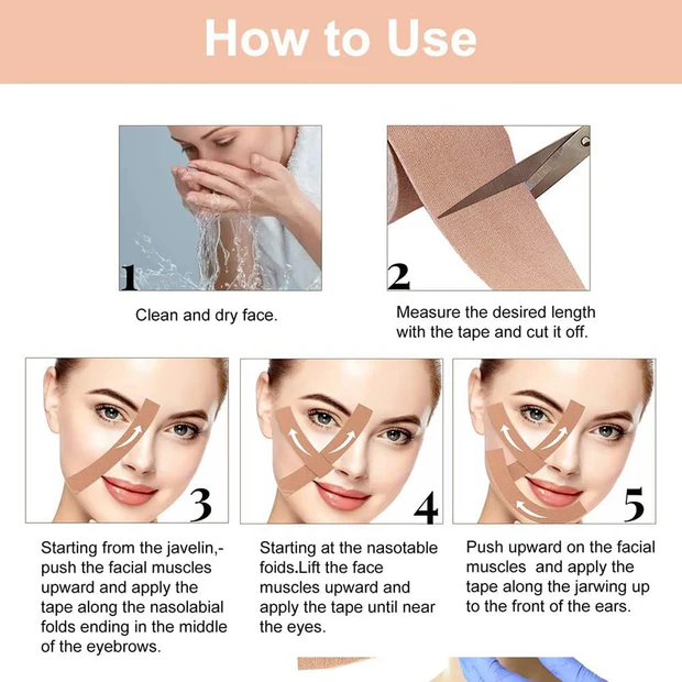 - Facial lift tape: Our face lift tapes combat the effects of face lifts and wrinkles. Specially designed for sensitive skin on the face and neck.
