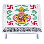 We brings to you Stylish and extravagant looking rectangle patla/ stand for Royal Weddings & Pujas. A very beautiful and unique style of minakari patla for increasing the beauty of your home. Made of wood the minakari design work gives it a different look. It can be used as a corner piece or to place god idols or to sit while performing Hindu pooja. Easily eye catching and admirable by everyone. Each piece is handcrafted and there may be a variation in colour and design, Pooja Items , Pooja Samagri