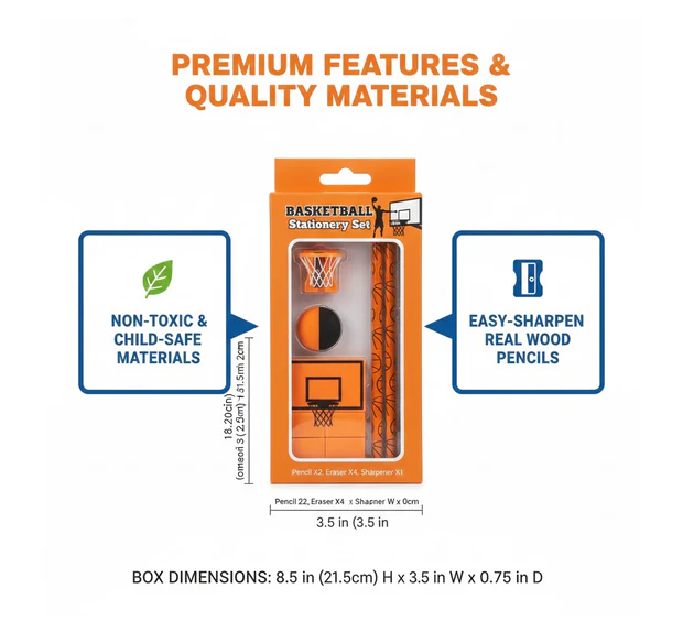 Stationary Kit Football & Basketball Theme Stationary Set For Kids, Pencil, Sharpener, Eraser Set For Kids, Boys & Girls, Birthday Return Gift Stationary Set