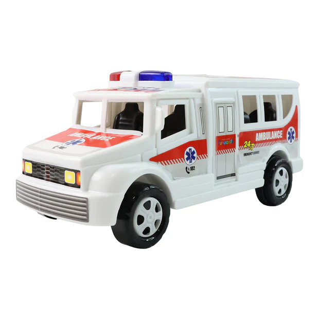 Funwoods , friction powered ambulance , ambulance toy , rescue toy car , realistic ambulance toy , role-play toy , pretend play ambulance , durable plastic toy , smooth wheels toy , push and go toy , funwoods ambulance toy , friction toy car , ambulance playset , toy for toddlers