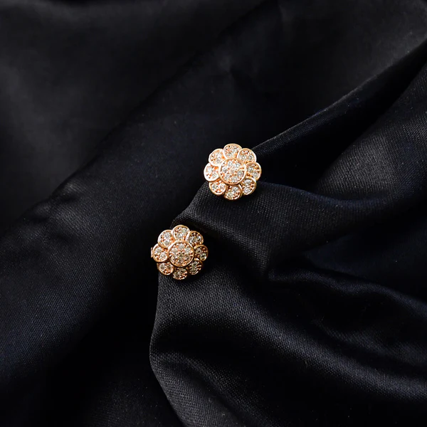 Gold Finish Round Crystal Stud Earrings with Floral Pattern for Women