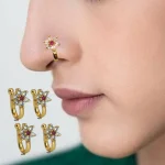 Be the first to review “Gold Plated Floral Red & White Stone Clip-On Nose Ring for Women Combo Pack of 4” Cancel reply