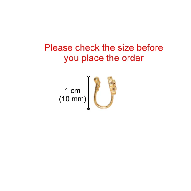 Add a touch of traditional elegance to your look with this gold-plated floral nose ring featuring a sparkling red center stone surrounded by shimmering white stones. The comfortable clip-on (non-pierced) design makes it perfect for women who want a stylish, pain-free option for daily wear or festive occasions. Lightweight, skin-friendly, and beautifully crafted, this nose ring enhances any ethnic outfit instantly. Ideal for weddings, parties, cultural events, and gifting.