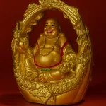 laughing buddha idol for home, golden buddha statue feng shui, vastu laughing buddha showpiece, wealth attracting buddha idol, home decor lucky statue, resin buddha decorative item, gift item spiritual decor, golden arch frame buddha figurine, good luck feng shui showpiece, laughing buddha with bowl and beads, prosperity buddha sculpture for office