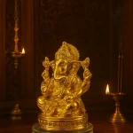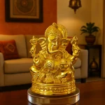 Enhance your home mandir or living space with the divine presence of this Golden Lord Ganesha Idol. Expertly crafted with exquisite detailing, the idol features Ganpati seated in a traditional posture with a serene expression and radiant golden finish. This spiritual decor piece is ideal for daily worship, festival decoration, Diwali celebrations, or as a sacred gift for housewarmings, weddings, and other auspicious occasions. Place it in your pooja room, living room, or office to invite blessings of wisdom, prosperity, and good fortune.