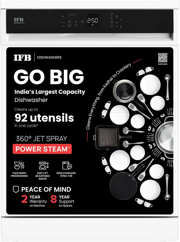 IFB 14 Place Settings with DeepClean® Technology Freestanding Dishwasher (Neptune FX14, White, 70° Hot Water Wash with Hygienic Steam Drying, Perfect for Indian Utensils)