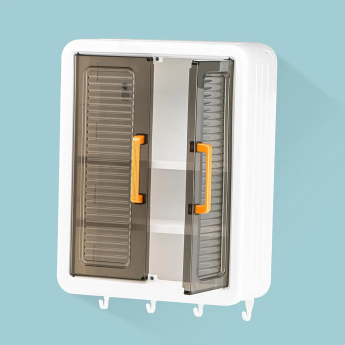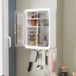 This wall-mounted kitchen storage cabinet is designed to maximize space and keep your essentials neatly organized while adding a modern touch to your kitchen setup. It features a spacious interior with multi-layer shelving suitable for storing spices, jars, sauces, condiments and other pantry items. The premium transparent sliding doors allow you to view contents easily while keeping dust, moisture and insects away. Equipped with strong built-in hanging hooks at the bottom, it provides extra space to hang utensils, ladles, towels and kitchen tools for quick access. Easy to install with the included mounting accessories, this cabinet makes your kitchen look cleaner, more elegant and easier to maintain. Perfect for compact kitchens, rented homes, or modern modular setups, this multipurpose storage unit offers both style and convenience.
