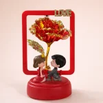 This romantic LED rose couple showpiece beautifully captures the essence of love and togetherness. Designed with a glowing decorative frame, a metallic rose, and an adorable couple figurine, it creates a warm and elegant ambience. Perfect for tabletop décor, this compact showpiece enhances bedrooms, living rooms, and workspaces while adding a soft decorative glow. A thoughtful décor gift for memorable moments.