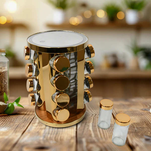 LED Spice Rack Organizer, Rotating Spice Rack (Golden / 16 Pc / MOQ – 6 pc)
