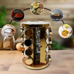 - It uses a 360-degree rotating design, which saves more space and is easy to use when cooking. (with jars on it), which can save more space in your kitchen and cabinets. There are as many as 16 spice jars that can store a variety of spice, and there are no jars on the cabinet.