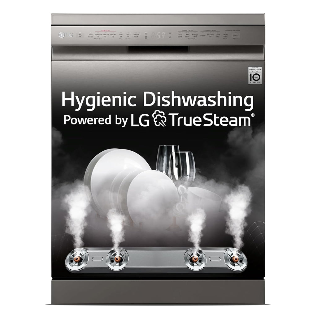 LG 14 Place Setting Free Standing Dish Washer with TrueSteam, QuadWash, EasyRack Plus, Wi-Fi Enabled (DFB424FP, Silver, Inverter Direct Drive Motor)