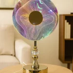 LED table lamp, luxury decorative lamp, crystal base lamp, USB powered night lamp, multicolor glow light, ambient lighting, modern home décor lamp, acrylic disc lamp, bedside night light, bedroom lamp, living room lamp, office decorative lamp, gift for home décor lovers, mood lighting lamp, designer lamp for home.