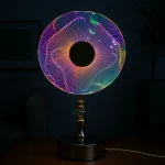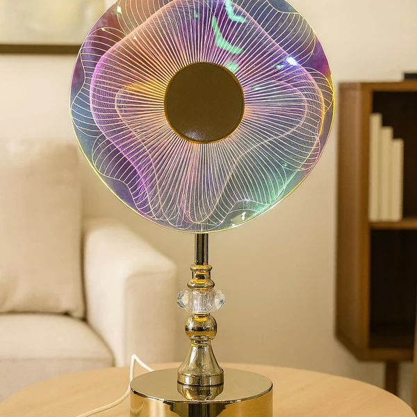 🌟 Unique Design – Features a round acrylic disc shade with colorful glowing patterns for a striking visual effect.