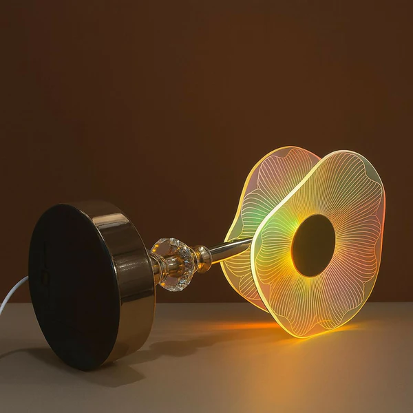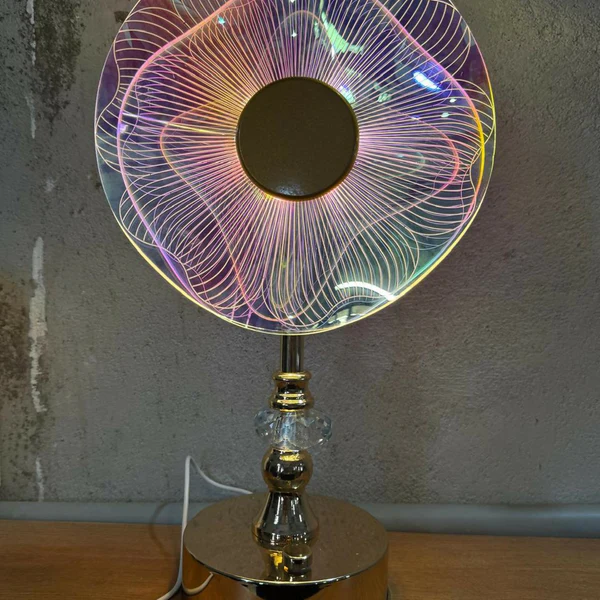 Elevate your home décor with this luxury LED table lamp, designed with a premium crystal base and a unique acrylic disc lampshade that radiates a mesmerizing spectrum of colors when lit. Its elegant blend of modern style and ambient lighting makes it a perfect addition to your bedroom, living room, study, or office space. USB-powered for convenience, this lamp creates a soothing atmosphere, ideal for relaxing evenings, bedside reading, or adding a decorative touch to your interiors. A stunning statement piece that combines aesthetics with functionality.