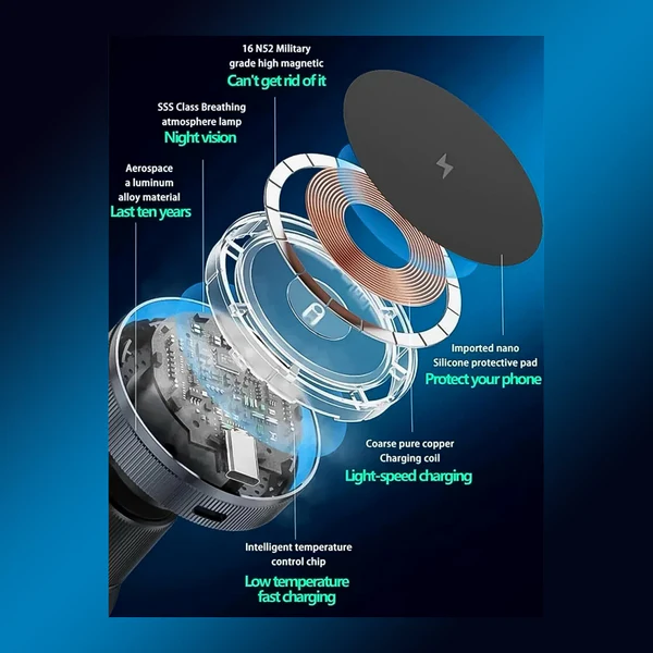 - Safe and Powerful Magnets – What sets for Magnetic Phone Mount Wireless Charger apart is its powerful and safe magnets. With strong magnetic force, your phone stays secure even on the bumpiest roads, giving you peace of mind while you drive. This car cell phone holder is compatible with iPhone and allows for quick mounting without the use of clamps. Upgrade your car accessories with where safety and functionality meet entertainment.