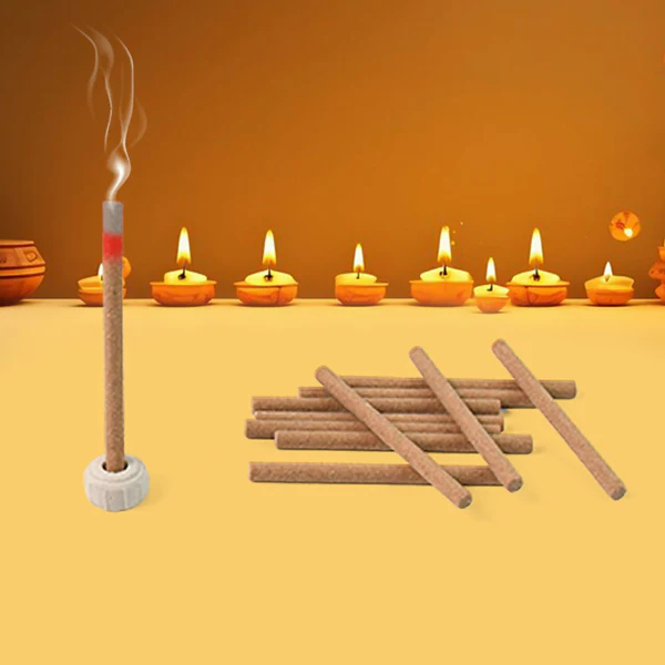 Made from natural ingredients like wood powders, aromatic herbs, resins, and essential oils, it emits a pleasant fragrance when burned.