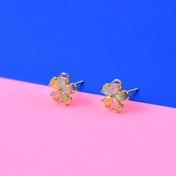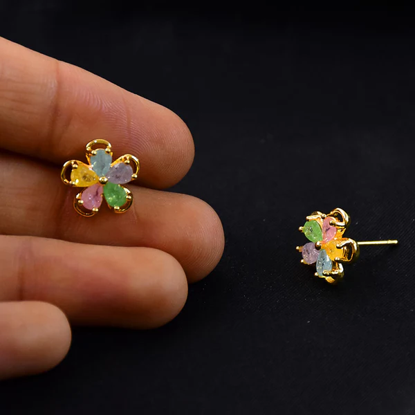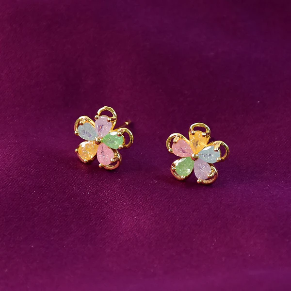 Be the first to review “Multicolor Crystal Flower Stud Earrings with Gold Finish for Women” Cancel reply