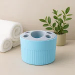 Streamline your bathroom countertop with this multifunctional oval-shaped utility holder designed to keep your essentials organized and accessible. Crafted from durable, high-quality plastic, this stand features five neatly divided slots of varying sizes to accommodate toothbrushes, toothpaste tubes, razors, and other small toiletries. Its ribbed design and anti-slip base provide a modern aesthetic and stable grip, ensuring it stays in place even in wet conditions. Perfect for maintaining hygiene and organization in homes, dorms, offices, or hotel bathrooms.